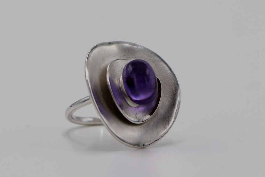Bague en argent et cabochon cristal Baccarat